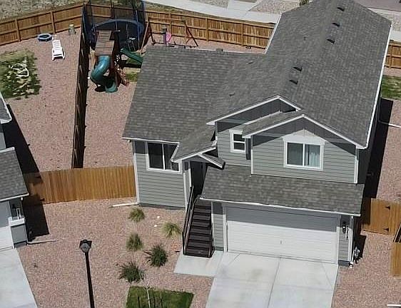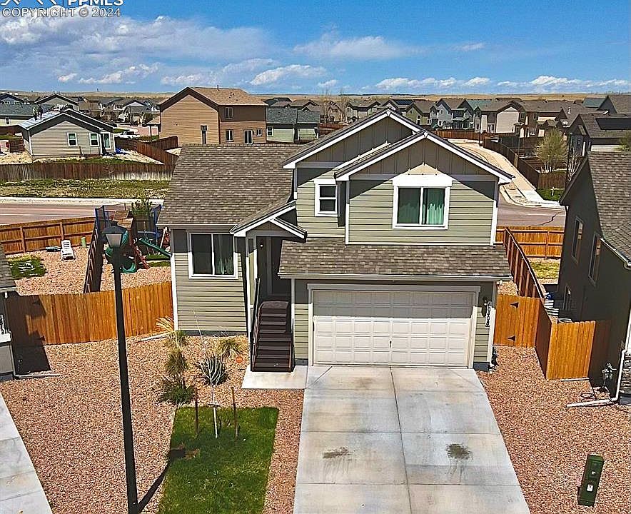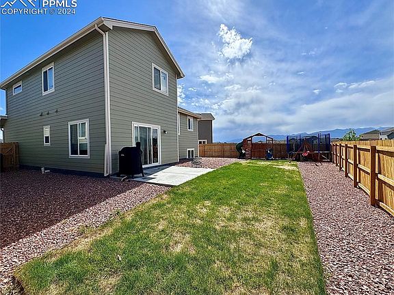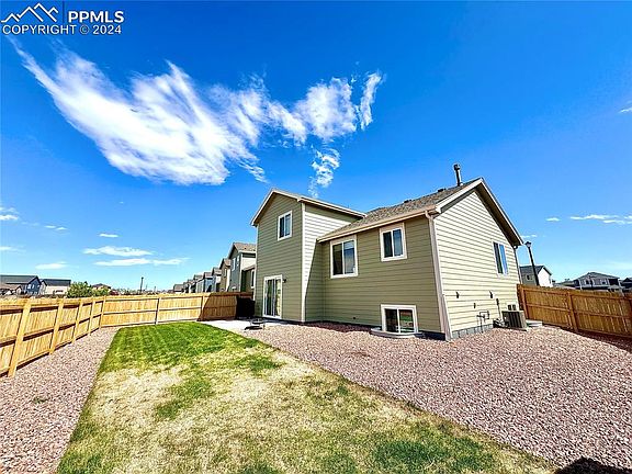 Enjoy the beautiful Colorado sunsets from this newer 4 level home with a spacious backyard that does not back to another house! Upper level has 3 bdrms. and 2 baths, 1 bedroom and full bath,2nd family room/playroom in the basement. New roof in Feb. 2024. Lower level family room has 1/2 bath, access to garage and laundry, and walks out to fenced backyard. Large eat-in kitchen that can accomodate table w/6 chairs. This is a great home with room to spread out for some privacy. 7 miles to Ft. Carson Gate 20 and appx. 8 miles to Peterson AFB. All measurements approximate. Buyer to verify all measurements, school, Metro District and any appurtenant information.