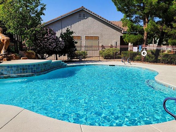 Beautiful single story Fully Furnished home in the Heart of Summerlin in a gated community with Community Pool and Spa. 3 Bedrooms, 2 full baths, almost 1900 square feet of living space on one level with 10' Ceilings. Plantation Shutters. Light, Bright, Open and Airy! Modern kitchen includes upgraded Stainless Steel Appliances and granite countertops. Breakfast bar for eating or hanging out. Furniture pictured will be different. The home will be completely furnished with a cozy leather leather love seat in the Family room a few casual chairs and watch the TV and gas fireplace. Living Room will have a oversized Gray upholstered modern sofa and loveseat and glass coffee and end tables. Great for relaxing and watching the 65" TV. Dining room will have a white farmhouse table with 6 chairs (4 white, 2 barn red) . Master Bedroom has 2 closets, 55" TV and a King Size Bedroom Set. Secondary bedrooms will have a queen bed with dresser and full size bed with dresser. Washer and Dryer included too! Relax on the back patio. 2 Car Garage and extra guest parking. The home will also include a few small appliances, dishes, silverware, pots and pans, linens, bedding and iron/iron board. Just bring your clothes and your personal items! Wifi is included in the rent. Pets will be considered. The home is located next to Summerlin Hospital, The Trails Village, Downtown Summerlin Mall, Summerlin Library, TPC Golf Course, Red Rock Canyon, Casinos, Las Vegas BallPark, City National Arena, Shopping, Gyms, Schools, Places of Worship, Nearby Parks, Bikepaths and just a 20 minute drive to the Strip. Available May 25, 2021. Landlord will do a minimum of 2-4 months with a slightly higher rental amount. $2700 per month is for leases 5 months or longer. Wifi and HOA fees are included. Tenant will pay power, gas, water, sewer and trash. For shorter terms, landlord will keep utilities in their name and bill accordingly. Security deposit equal to 1 months rent, Cleaning Fee ($350), Key Deposit $100 (garage remotes, gate remotes, home keys) and Pet Deposit ($250 each per pet). Available May 25, 2021.