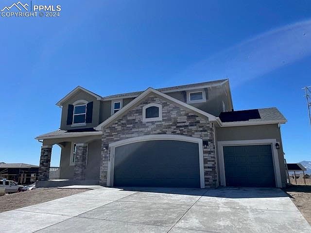 Ready now! Monarch 2-story in Wolf Ranch. 4 bedrooms plus loft, main level study, 2.5 bath, 3 car garage. Stucco and stone exterior with front porch. Owner's entry from garage features mud bench and drop zone cabinet. Gourmet kitchen layout showcases knotty alder cabinets in a dusk finish, elegant Bianco Tiza countertops, walk-in pantry, and stainless steel appliances including 36" gas cooktop with chimney hood, and two ovens. Main level features a dedicated study, open dining room, breakfast nook and great room with fireplace. From kitchen nook walkout onto spacious, partially covered patio perfect for relaxing or entertaining. Upper level hosts spacious loft, 4 bedrooms, and large laundry room. Beautiful master bath showcases large shower with seat walk-in closet. Unfinished basement. 3-car garage includes 4' forward extension on the two car bay to accommodate longer vehicles or provide extra storage. Home comes equipped with air conditioning, smart home package and central vacuum system. Seller incentives available.