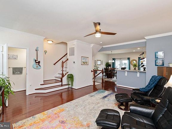 OPEN SUNDAY, APRIL 7TH 1;00-3:00 P.M. Simply stunning 3 level Mozart model home with beautiful wood floors on the stairs to each level and the kitchen, dining and living rooms. The high ceilings are enhanced with beautiful crown molding which offers so much space in this open floor plan. Beautiful kitchen with dark cabinets, gorgeous back splash, island and granite counters with all stainless appliances. Sliders to over-sized deck and the larger windows with side panels in many rooms. Sellers just installed top of the line new carpet on entry level and top level. The Master Bedroom is well designed with a large walk-in closet and beautiful Master Bath, double sinks and dual shower-head. The laundry is conveniently located on bedroom level with full size washer and dryer. Pull into your 2-car garage and enjoy urban living at it's finest. Close to all major highways, I-95 and fine dining and shopping. Affordable living at almost 50-100K less than new homes under construction across the street. Community center with pool that is a hop, skip and a jump from your front door. This home hardly looks lived in so call your Realtor today and stop by for a private tour.