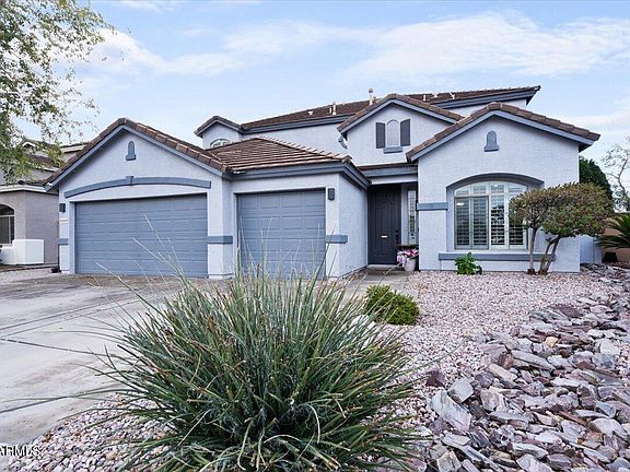 This home has it all! Five full bedrooms, 3 bathrooms including one full bed and bathroom on main floor. The home features a pool, RV Gate with pavers for your trailer or toys, 3 car garage with ext. driveway and solar. Let's talk about this remodeled kitchen with white cabinets w/dark pulls, white Quartz countertops and huge island with an extended row of bottom cabinets along dining area, corner pantry, double oven, stainless steel appliances and gas stove. You will love entertaining in the backyard with the extended covered patio, turf, play pool and park views with no neighbors directly behind. This gorgeous home sits within the award winning Mesa Villages of Eastridge with private walking paths, many parks and within walking distance to the Jr High and High School.