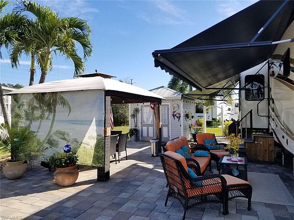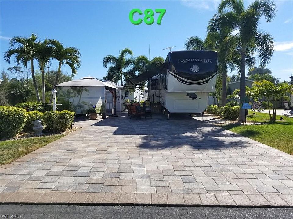 C87 Come and enjoy this nicely landscaped property with pavers and soft-top gazebo great for entertaining! There is a nicely finished 10' x 12' accessory building with full size shower, commode, sink with vanity, stackable washer/dryer, refrigerator, air conditioner, ceiling fan and fouton. You have additional storage overhead. Included in the maintenance fee is water, sewer, irrigation, cable tv & lawn mowing PLUS maintenance of all the resorts amenities, roads and common areas. Cypress Woods RV Resort is a 5 star luxury resort. Amenities are plentiful including 2 heated pools and hot tubs. The elegant Town Center has a large great room with dance floor and stage plus a catering kitchen to accommodate the numerous social events. There are community & card rooms and daily activities throughout the resort. Other amenities include tennis, pickleball & shuffleboard with lighted courts, bocce ball, water aerobics, a day spa.