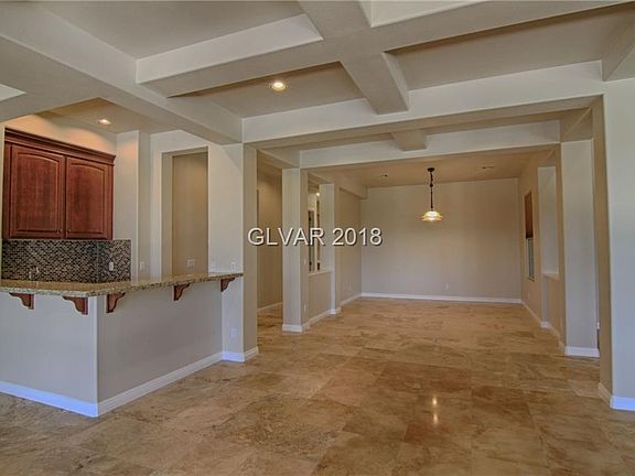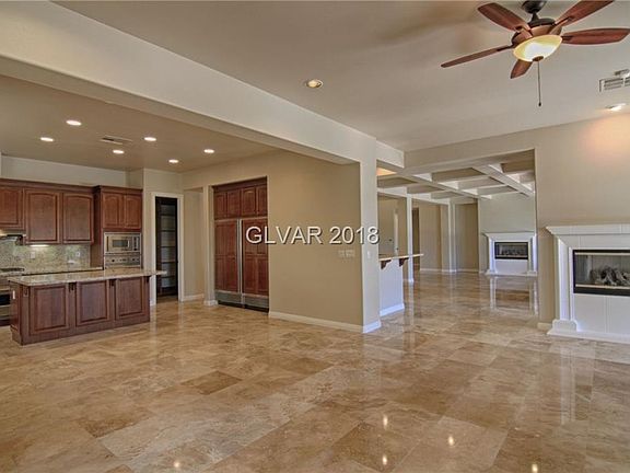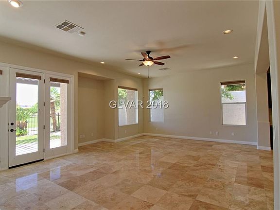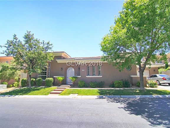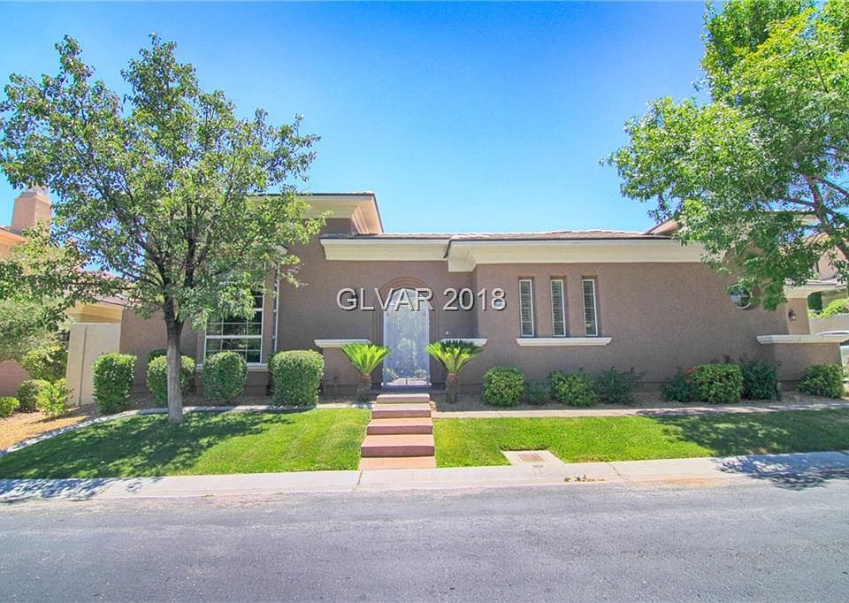 The Palisades is a guard-gated golf community of semi-custom homes, in Summerlin, offering all the amenities of life in the northwest Vegas Valley, including a family friendly park with sports courts, within walking distance of this home, which is one of those in the village that line the rugged TPC Canyons golf course. A deep, lushly landscaped courtyard entry leads to spacious and generous, open gathering areas inside that enjoy sweeping views of the green, which also adds tranquil ambiance when enjoying the backyard pool/spa. A master suite, located apart from three secondary bedrooms in a separate wing, provides added privacy for all. In that courtyard, there’s also a detached casita with private entry, perfectly suited as an office, play space or guest quarters.
