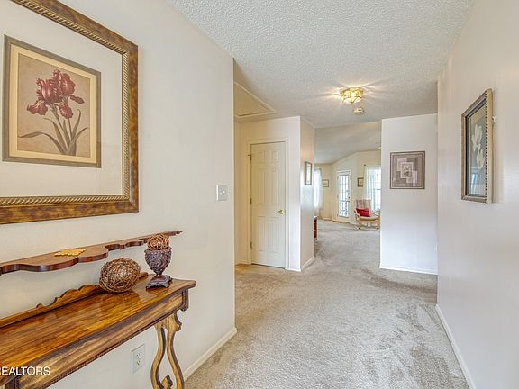 Welcome to 10409 Sagebrush Way, situated in the desirable Devanshire subdivision of West Knoxville! Upon walking up to this charming townhome, you will be greeted by the beautiful front covered porch where you can relax drinking a morning coffee and listening to the birds sing. Once inside you will notice a very large entryway and as you continue down the hall to the left, you'll see a generously sized bedroom with lots of nice natural lighting and a walk-in closet. The full bathroom has been updated with new luxury vinyl plank flooring. The living room features cathedral ceilings and a great gas fireplace for those cozy winter nights. The living room flows nicely into the separate dining room which then leads into the kitchen, featuring new appliances, and a breakfast bar. The large primary bedroom also highlights cathedral ceilings and a connected private primary bathroom. The bathroom includes a vanity counter, an oversized walk in closet and a full bathtub/shower. Once outside, you'll see a covered patio and a privacy fence with pretty landscaping. The HOA includes weekly lawn service, garbage service and pressure washing twice a year. This home is ready for you to call it yours!