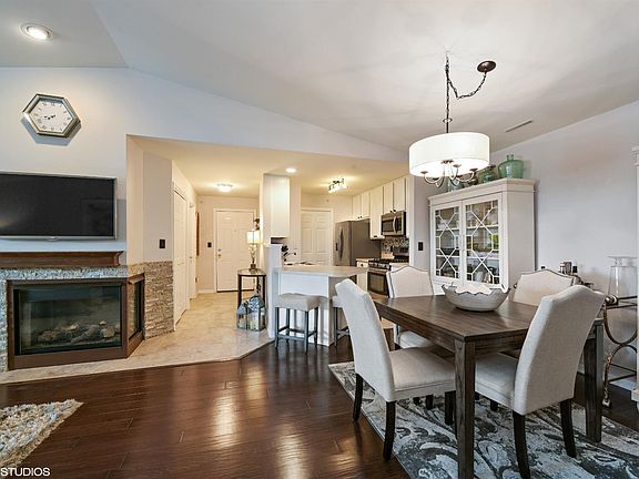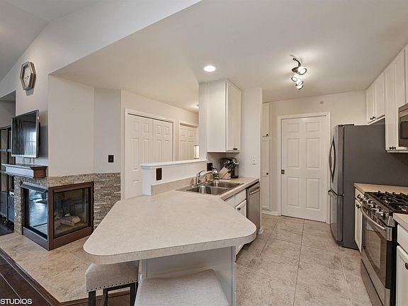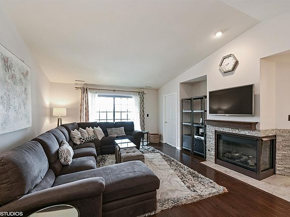 This 2 bed, 2 bath COMPLETELY RENOVATED 3rd Floor Condo located in the desirable, centrally located White Oak Woods Subdivision is JUST STUNNING! The open concept Living & Dining feature vaulted ceiling, hand-scraped engineered HW flooring, gorgeous 3 way gas FP w/granite surround, wood mantel, & enclosed outlet run ideal for TV being mounted above the mantel. Kitchen boasts white cabinetry, glass tile back splash, 18 square porcelain tile floors, S/S appliance package (2014), & breakfast bar area (seats up to 3). Spacious Master suite is its own retreat with the private FULL bath & walk-in closet. 2nd bedroom has access to 3/4 bathroom which is ideal for guests, roommate, or child. Washer & Dryer included + laundry room has addt'l cabinet space & a new sink & faucet. Maintenance Free Living at its best!! HOA includes: lawn maintenance, snow removal, ext. maintenance, common insurance, water/garbage fees. Unit comes w/a 1 car garage (South side of building-Furthest West Garage Spot).