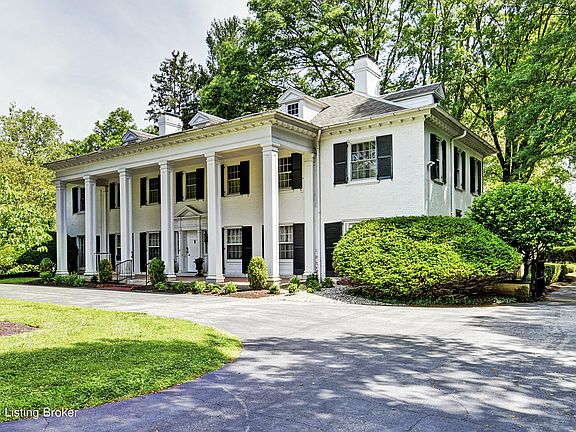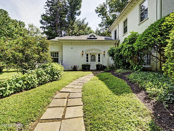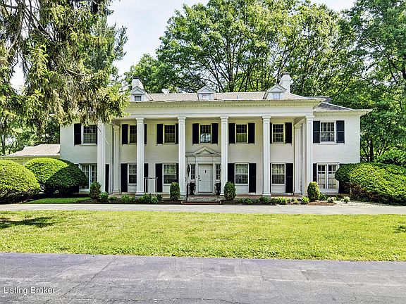 This spectacular Alta Vista Road house is one you have probably admired for years just driving by. Built in 1929, it has stood the test of time... Please read some of the excerpts from the write-up when it was on the Filson Club Historical Society house tour. ''Piecing together the oral history, it appears that the Fischer house was designed and built by Willy Mae and William Baird in 1929. The Bairds seem to have built several houses on spec, possibly living in one while the next was being built. Others were built on Red Fox and Eastern Parkway. Willy Mae, later Mrs. Harry Whayne, was associated with the Strassel Company for many years, and the design of the house is attributed to her. William Veeneman, a board chairman of Churchill Downs, was a longtime owner before the Fischers bought the house in 1971. The white painted brick, seven bay house is reminiscent of Mount Vernon and sits well back on its deep lot between Alta Vista and Seneca Golf Course. Its two-story porch supported by six paneled posts spans the central five bays. The first-floor windows under the porch have panels below to match the French doors in the two end bays. The porch roof is flat and connects to a hip roof with dormers over the second, fourth, and sixth bays and at the ends. The cornice features console-shaped modillion blocks. The front door and sidelights are framed by fluted pilasters which carry a 3-part paneled entablature and a pediment above the central section. Inside, the entry features a carefully detailed stair which leads to a landing with a Palladian window added by the Fischers. Rising from the landing, the stair treads are reflected on the reverse side, a detail rarely seen in the original outside New England. Archways and transoms lead from the hall to the living room to the left and the dining room to the right. The highlight of the dining room is an Adams Scottish sideboard. The living room is accented with panel molding and Federal mantel. An equally spacious kitchen and breakfast room are located beyond the dining room in the analogous space, and bedrooms are located on the second floor. Thus, the house stood until 1989 when the two grand pianos and harpsichord in the living room rose and demanded better accommodations. With the help of John Bickel, a gallery was added behind the hall and living room connecting to a twenty-eight by thirty-two-foot music room. In the process, a hall, hidden stairs, bedroom suite, office and bar were also added. Better known for projects such as the U of L School of Music and the airport, Bickel reveled in his first "non-modern" commission. The fenestration in the gallery and Ken Von Roenn skylight, reminiscent of a previous bay, attest to his attention to detail. The music room itself, with eight arched windows and interior arches which replicate the transoms of the entry, is a wonderful room for daily living. Outside, Mary Webb has provided an appropriate backdrop for the room." There is a detached 3+ garage with living quarters. The price reflects the need for updating. Bring your contractor and decorator and plan to make this "Grand Dame" your own! The seller will share the home inspection completed last fall! The house is being sold in "as is" condition.