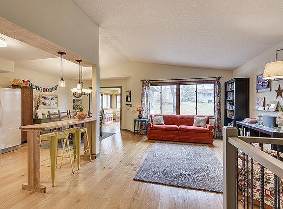 Simply stunning split level with updates throughout in high demand Mounds View Schools!Open floor plan for entertaining, soaring vaulted ceilings, spacious 4 season porch, oversized master bedroom, beautifully tiled baths, striking neutral dcor throughout, spacious lower level family room, maintenance free exterior, and all in an amazing location/neighborhood! Just move in & enjoy!, Directions Lexington Ave N of 694, Right (East) on VIctoria, Left (North) on Amble