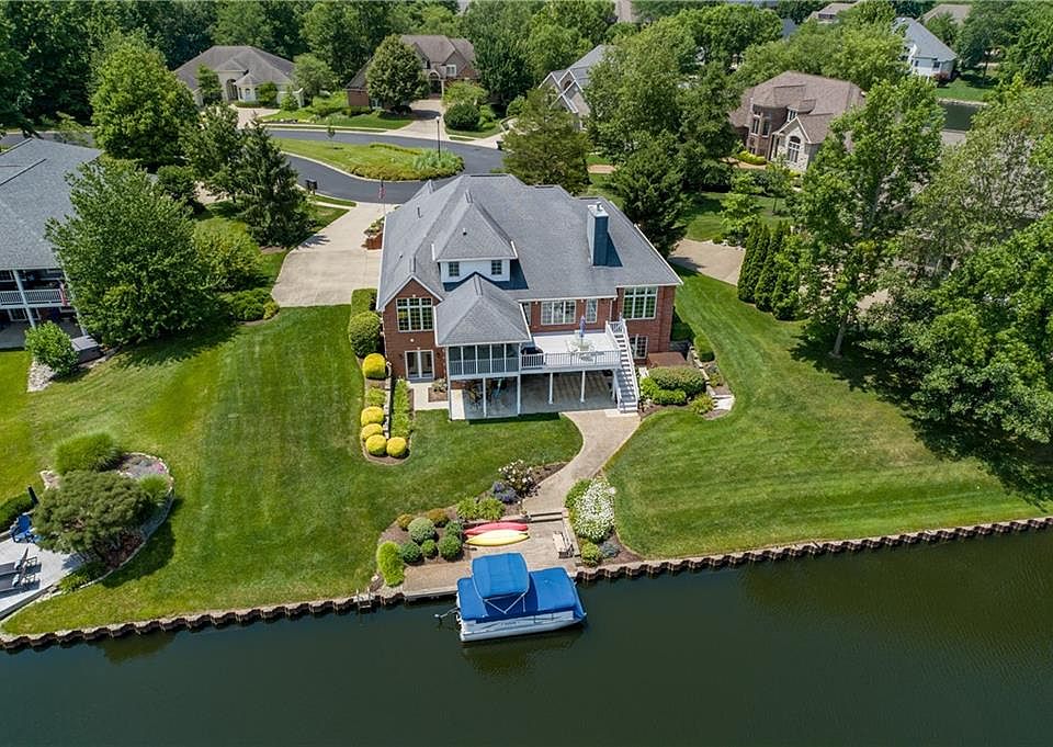 Exquisite location on the water at Tipton Lakes with mature trees & breathtaking view of the lake. Custom built, 1 owner all-brick home. It's like resort living! Views of the lake from nearly every room of the house on the main floor, esp. the main bedroom. Kitchen with newer appliances, Wi-Fi enabled Oven. Two story living room with beautiful arches. Open deck plus a screened in deck. Walk-out basement. The basement has a family/game room, bedroom, full bath plus home theatre. A walkout storage area. Professionally landscaped yard.