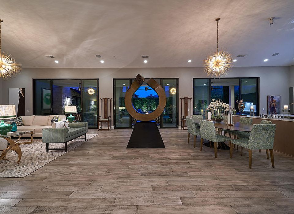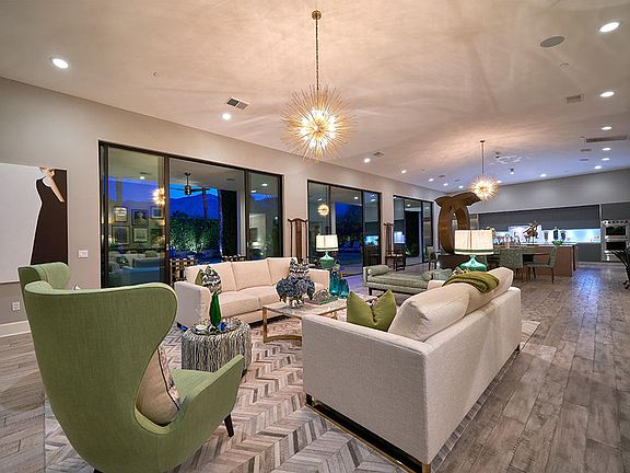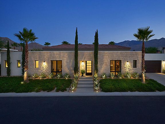 Palm Springs luxury lifestyle and exclusivity await you with this award-winning and highly celebrated Alta Verde Modern Villa masterpiece. Tucked inside the guarded gates of Monte Sereno in prestigious South Palm Springs, is this stunning villa with lush, mature landscaping and one of the largest and most private south-facing back-yards in the development. The sophisticated and elegant interior design crafted by Grace Home Furnishings exudes warmth, comfort and refinement in every detail, landing this home in several esteemed publications including Modern Luxury and Palm Springs Luxury Home magazines. It was the Traditional Home magazine showcase residence during the 2018 Modernism Week home tour and earned the title of Modernism Week's 'Home of Distinction (2018).' The open-concept floor plan and grand living areas with soaring ceilings and three sets of oversized Fleetwood floor-to-ceiling glass sliding doors capture the surrounding majestic San Jacinto mountain views perfectly. They beautifully frame the 60-foot covered patio with built-in Koolfog misting system and outdoor kitchen.