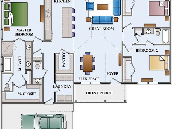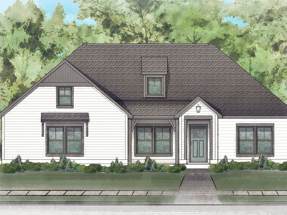 The Bragg A offers an inviting front porch that leads you in the open concept main living, dining, kitchen combination. With a private master wing, this master suite offers a spacious room with double sink vanity following a walk in closet. With it all being on one level, it is sure to be guest friendly.