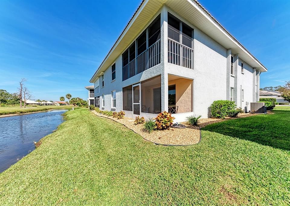Back on the Market! Escape to Florida in this exquisite three-bedroom, two-bathroom second-floor condo in the peaceful Gulf Green community. This beautifully updated retreat offers a tranquil atmosphere that will instantly make you feel at ease. The kitchen and both bathrooms have been renovated, featuring luxurious granite countertops that add a touch of elegance to your daily life. Brand-new chrome ceiling fans and a modern hanging light fixture enhance the interior, creating a comfortable and modern ambiance. Cathedral ceilings and updated windows flood the space with an abundance of natural light, making it feel even more inviting and open. Most windows feature plantation shutters. The owner's suite is a true sanctuary, complete with an oversized closet and an ensuite bathroom featuring a dual vanity and a tiled shower. This peaceful haven offers a view that's hard to beat, overlooking a scenic golf fairway and the serenity of the surrounding trees. The one-car garage not only provides ample storage space but also ensures that your vehicle is protected and secure. This condo has been lovingly maintained and only used seasonally, ensuring that it remains in impeccable condition. Residents enjoy a strong sense of neighborly camaraderie, with access to fantastic community amenities, including a swimming pool, pickleball and tennis courts, as well as a shuffleboard area, fostering a lively and active community spirit. Golf Green's location is simply unbeatable. Just minutes away from Venice Beach, you'll have easy access to all that the island has to offer, from shopping to dining, pristine beaches, a hospital, and more. Don't miss this opportunity to live in a tranquil haven while still being close to all the amenities that make life enjoyable.