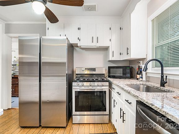 RENOVATIONS COMPLETE!!! Located just minutes from Uptown Charlotte, dining and shopping, this charming 3-bedroom, 1.5-bathroom brick ranch sits on a spacious corner lot, offering plenty of curb appeal and a cozy, inviting atmosphere. The exterior features classic red brick and a well-maintained front yard includes prolific flowerbeds. As you step inside, you'll find a warm and welcoming living space with a large picture window that looks out into a private backyard filled with flowering shrubs. The newly updated eat-in kitchen is well-equipped and functional, with new stainless steel appliances including a gas stove, newly installed granite counters and tile backsplash. The 1.5 baths have also been completely renovated as well. The three bedrooms are all generously sized. Outside, the corner lot and private backyard is perfect for gardening, outdoor play, or relaxation. A driveway and carport offer extra parking.