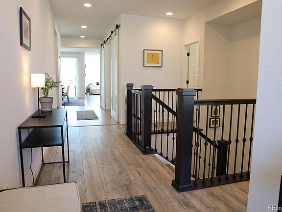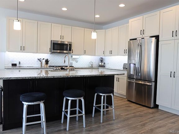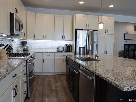 Light! Bright! Open Floor Plan! This is a modern home that is model-home clean with thoughtful upgrades! Kitchen has white cabinets with soft-close drawers, slab granite, stainless appliances, tile backsplash, under cabinet lighting, pendant lighting, single bowl stainless sink, and is open to the dining area and living room! The spacious living room has great natural lighting and fireplace! Walkout to the covered patio and easy-maintenance back yard! The master bedroom has a spacious master bath with double-sinks, tub, shower with tile from floor to ceiling, slab granite counters with undermount sinks, modern tile floor pattern! The second bedroom on the main floor has a full ensuite bathroom! The study has full-size barn doors! The stairs down to the finished basement are open and have iron ballusters! In the basement there is a large family room with three different "areas" to it, 2 more bedrooms, and a full bathroom with a classy touch to the finishes. The 4th bedroom has a study/desk area, perfect for the school studies or a home office. Great location within Colliers Hill - a short walk to the new K-8 Soaring Heights school as well as Erie H.S., and a short walk to the community clubhouse/rec center and pool! Priced to sell!