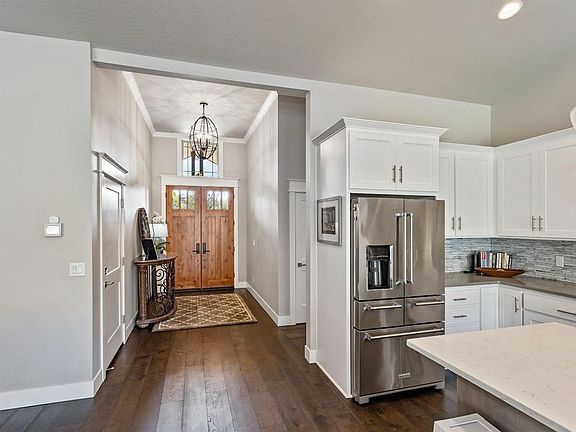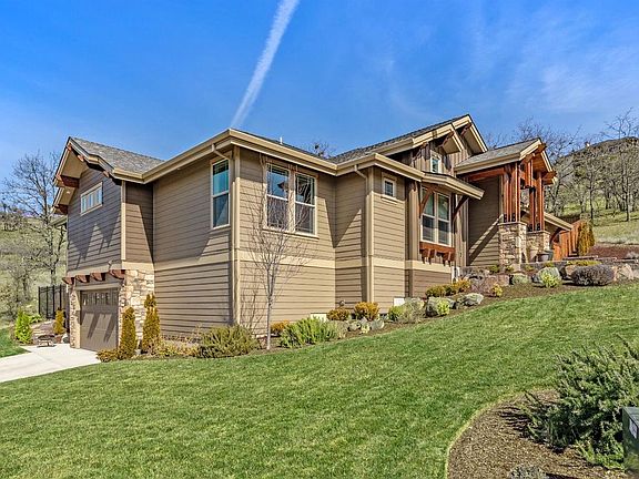 Treat yourself to a one level East Medford home with beautiful views! You must see this charming and extremely functional 2438 sq. ft. craftsman style home featuring an open floor plan and high-quality upgrades. This home is built for relaxing indoors or outdoors by the pool and entertaining throughout. It features 3 bedrooms, 2.5 baths (as well as an additional bath in the lower level garage), 2-two car garages, wet bar, and a covered patio with a custom swimming pool. Perfect for growing families or retirees who want extra shop or garage space and who love to entertain. The home includes a sound system, outdoor gas fire pit, solar pool heating system, fenced raised garden and excellent landscaping. Large covered patio area that leads to the pool and your totally private backyard! Innsbruck Ridge is a gated upscale subdivision at the base of Roxy Ann.