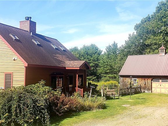 Nestled in NY’s western Delaware County and nearby Catskill Mountains, this charming 2 story, 2-BR, 1.5-BA saltbox-style home offers serene country living on 8+ acres of beautifully landscaped grounds. Built in 2003 and set high on a hill with a long, private driveway, the property boasts mountain views. The first floor features a spacious open-plan living, dining, and kitchen area with a cozy working fireplace, radiant floor heating, and three separate entrances. The kitchen includes a breakfast bar and large pantry, while a convenient half-bath and bedroom complete the main level. Upstairs, the light-filled second floor offers a large bedroom with closet, full bath with a washer/dryer, 4 skylights, and a walk-in closet. Additional highlights include a full basement, backup Generac generator, and wood windows. Outside, a two-stall garage with electricity, radiant floor heating, a workshop with a dust-collection system is perfect for projects. Located just minutes from Stamford Golf Course, Mount Utsayantha, and the quaint shops of Stamford, NY such as The Shop at Catskills Junction, this property offers peaceful solitude and modern convenience. Call for a private tour today.