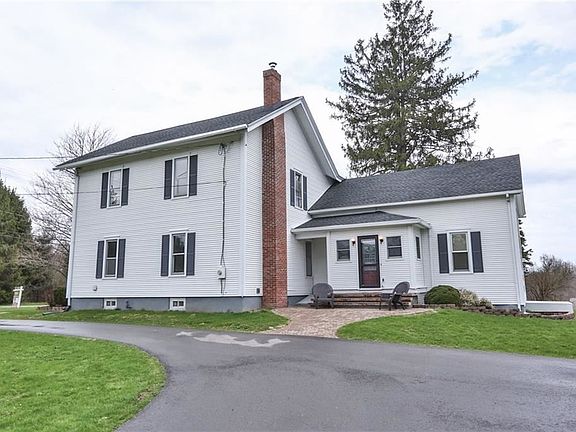 Stunning Renovated Farmhouse on with 5 acres, greek revival home, 3 car garage and horse shoe driveway, buyer of house has first right of refusal on addtitional 5 acre parcel with barns, seller will subdivide the property a time of sale. Perfect for a famette. 2975 SF Colonial is a Must See! 4 Bedrooms and 2 Full Baths! Large Foyer Opens to Living Room and Den/Study with Gleaming Hardwoods and Gorgeous Ceiling Medallions! Newly Remodeled Huge Eat-in Kitchen with Stainless Appliances, Granite Counters, Island, Walk-in Pantry with Original Woodwork and Open Shelving Opens to Formal Dining Room with Dry Bar Area! Full Bath on 1st Floor has been Completely Updated! Parlor Opens to Newer Full Wrap-Around Porch! Do Not Miss Out!, privacy galore