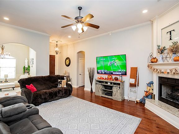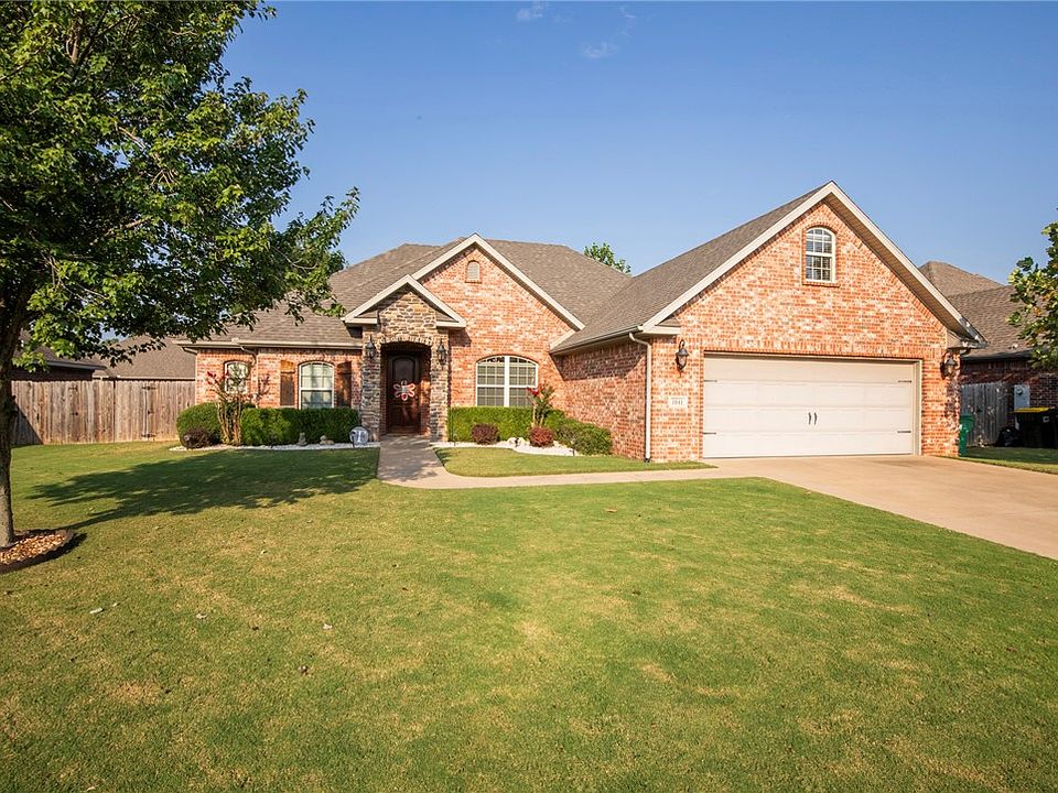 Immaculate 3-bedroom home with bonus room, ideally located just minutes from Bentonville West High School and Centerton Gamble Elementary. This thoughtfully designed split floorplan features soaring 11' ceilings, elegant crown molding, a spacious family room, and a bright dine-in kitchen. The generous primary suite offers comfort and privacy, while the versatile bonus room can serve as a home office, playroom, 4th bedroom, or media space. Step outside to enjoy a large, covered deck overlooking a professionally landscaped yard. The garage is upgraded with a durable poly-coated floor for easy maintenance. Recent updates add peace of mind, including a new roof (2024), as well as newer HVAC, water heater, and dishwasher. Clean, stylishly finished, and truly move-in ready — this home is a must-see!