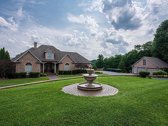 Scenic and stately best describes this gorgeous home situated on a large 3.12 acre lot located at 1041 Hidden Valley Drive, on Hidden Valley Golf Course in Morgantown, Kentucky. There are so many things to love about this home from the lovely entrance foyer, open great room with gas log fireplace and dramatic tray ceiling, formal dining with custom molding, beautiful kitchen with center island, granite countertops, tile backsplash, stainless appliances, sunroom just off the breakfast nook that opens onto the spacious deck with sweeping views of the beautifully landscaped lawn and golf course beyond. The master bedroom suite enjoys a large master bath with his/her vanities, whirlpool garden tub, walk-in shower and large walk-in closet complete with built-in's. Laundry room is conveniently located just steps from the attached two car garage. Two additional spacious bedrooms, a second full bath, powder room for guests, and a beautiful private office completes the main floor. Walk-out basement level boasts approximately 2,000 square feet of additional living space with a large family/game room, gas log fireplace, an additional 4th bedroom, ensuite bath and large walk-in closet, as well as a garaged area for additional storage. You'll also enjoy the 30x30 detached garage for additional parking/storage. Play a few rounds of golf in the morning and have your friends over for a relaxing meal on the back deck enjoying the views in the evening. It doesn't get much better than that.