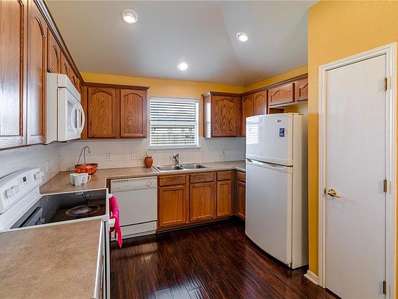 Not Too Big..not too small..Just Right! Right-Size now in this Well Maintained Single Story with so much to offer! Bright Open Split Floor Plan has 3 Bedrooms & 2 Full Baths/Designer Color Palette/Wood Floors/High Ceilings/Ceiling Fans/Fireplace*Immaculate Kitchen has oodles of Counterspace & Cabinetry/Built-In Microwave/Electric Range/Over the Sink Window & Opens to Cafe Dining*Gigantic Master Bedroom offers a Sitting Area & Master Bath has Double Vanities & Walk-In Closet*2 Nicely Sized Secondary Bedrooms & Second Full Bath*Indoor Utility*Big Back Yard*Walking Trails through the Community connect the 2 Parks/Playgrounds/Sport Courts*Super Location near Major Shopping & Roadways