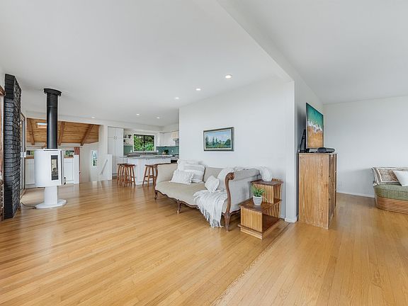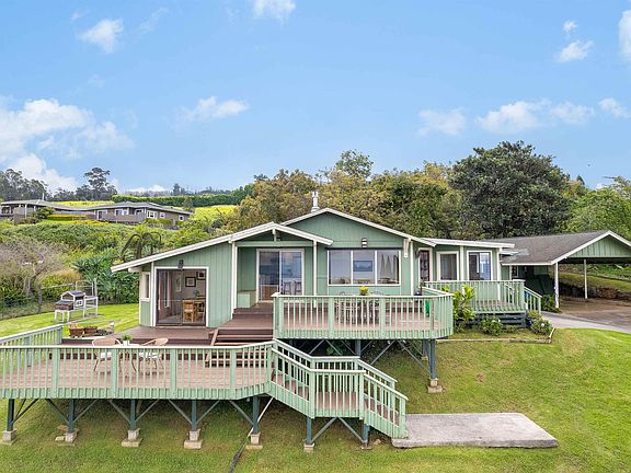 First time on the market (in 47 years, but who is counting?). This home & cottage, located in the “golden zone” of Kula has expansive views, ample decking to take in the views and abundant natural light inside. Evenings are graced with sunsets then; the Haleakala downslopes bring the crisp and cool air - great for sleeping! Mornings are filled with the sounds of birdsong and the sunrise at your back. The home mixes some of its nostalgic 1972 charm; original, refurbished oak flooring with updated modern convenience like the Jotul fireplace and Caesar stone counters with glass tile backsplash. Custom cabinetry, and stone are featured in the primary bathroom with an egress window to the outdoor bathtub where you can soak and catch the stars from the dark of night. The cottage features its own deck, bay windows in the bedroom, hardwood flooring and a wood-burning stove. Listing agent is related to Seller.