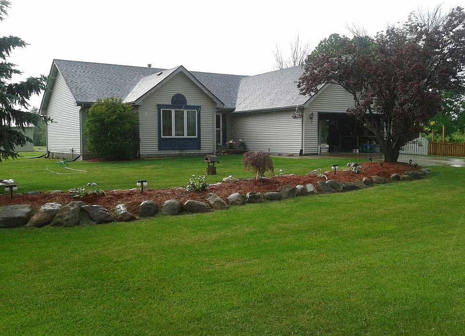 Attention business owners; Stunning 1600 sq. ft ranch with 3 bedrooms, 2 baths on 3 private acres with 2 adjoining pole barns (79x50 & 64x39) totaling 6,500 sq.ft, insulated, heat & electric. Lease out space or operate a business!! Home has been updated with granite kitchen, laminate flooring, newer carpet & paint. Professionally finished basement with high quality materials & workmanship + much, much more. Call today for a private showing!!