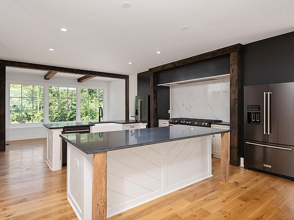Brand new MODERN CUSTOM BARN HOUSE on 3 pristine and very private acres with beautiful views of the Blue Ridge mountains. Superb custom design and top of the line finishes throughout. Open floor plan maximizes main level and primary bedroom views. All 5 bedrooms are spacious with private full bath en suite design. Blue stone covered patio & walkway; Wide white oak hardwood flooring & large format slate floor tile; standing seam metal roof; Pella energy star windows; 15 seer-high efficiency heating & cooling; Custom trim & custom millwork throughout. Amazing entertaining kitchen with two islands, exceptional handcrafted custom kitchen cabinetry. Top quality appliances include huge 60" gas dual range, two large refrigerators, dual dishwashers, and wet bar w/ wine fridge. Main level & second level have 10'/9 foot ceilings. The home also includes a finished basement w/ conditioned crawl space, on demand tankless water heater, oversized 2-car garage, EV charging, 16' High reclaimed chestnut custom barn door at entry. Property also overlooks beautiful pond at the back of property. More features will be listed in documents - too many to list. Outstanding value for this level of quality, views, privacy, and an incredible location!