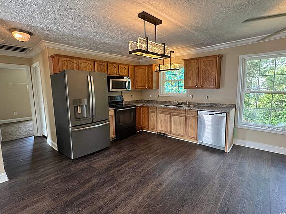 This well-maintained 3 bedroom, 2 bathroom home in the Meadow Farms community offers a spacious split floorplan with brand-new carpet in the bedrooms and luxury vinyl plank flooring throughout the main living areas. Fresh paint enhances the modern feel, and the kitchen is equipped with upgraded appliances. Additional features include a covered front porch, a bathroom with a garden tub, and a large laundry area with full-size washer and dryer hookups.Conveniently located, this home provides easy access to shopping, dining, and entertainment options. The historic downtown Conway area, featuring the Conway Riverwalk, is just a short drive away. Nearby schools are part of the Horry County School District. Additionally, the Grand Strand beaches are approximately 15 minutes away, offering opportunities for relaxation and recreation.