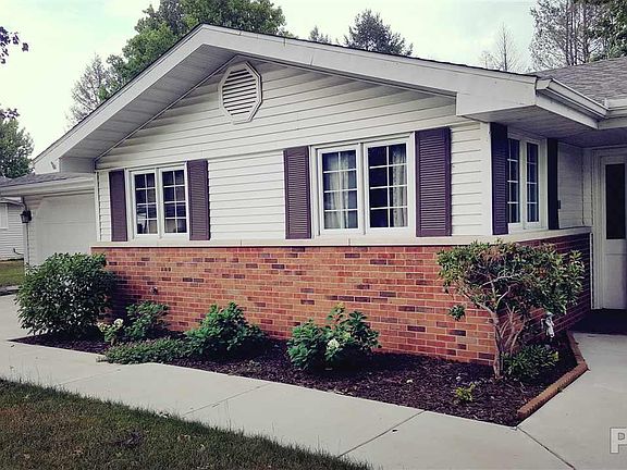 3 bedroom Ranch, , home with landscaped yard and new concrete driveway. Cathedral ceiling in Great room with Brick gas fireplace . Patio doors to 3 season room with skylights and gas free standing fireplace. Kitchen has lots of built in cabinets and china cabinet. All appliances will stay. Breakfast bar. New Furnace & CA, Microwave, Roof & gutters. Custom window treatment in kitchen. Vertical Blinds in great room will stay.Home has been painted & new carpet from Crawfords.