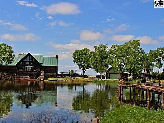 BEAUTIFUL RUSTIC CUSTOM LOG HOME w/Beautiful Sunrises and Sunsets located on lake with 154.5 Acres of Tillable Farmland, CRP, Pasture, Recreational and Hunting Land all in one place. Custom designed by owner, built by Kuhns Brother Log Cabins of Pennsylvania. The home has Geothermal heat/Air. The main floor has open Living Room w/25' high vaulted Ceiling. Large Wood Burning Stone Fireplace graces the southwest corner of this Great Room. Large Dining area next to a wall of windows to view the Lake. Grand stairway and Stained Glass Windows are a few of the unique features of this Home. Custom Chef's Kitchen has commercial Refrigerator/freezer, Gas Range w/2 Ovens and under counter Microwave. Granite Countertops and Stone Sink, Custom Cabinets w easy close drawers and doors. Large Walk-in Pantry w/customized Stained Glass Antique Door. Library/study with Fireplace, Antique Light Fixture and windows to view both the lake and the land. Outside of main level is a 300 sq ft Deck looking out on lake. Upper level, lofted Master Bedroom with sitting area and another Fireplace, and includes Master Bath, Walk-in closet with Washer/Dryer. The Lower Level Walk-Out basement has concrete floors, walls and ceiling for safety. There is large Family Room with another Fireplace, 2 Bedrooms, Full Bath w/Jacuzzi tub, Another Laundry Room. Also a 600 Sq Ft Deck overlooking lake, with an Outdoor Living area w/Fireplace and Kitchen. 30'x30x heated Shop, RV Location, Horse Shed, See Attached Doc