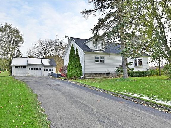 This semi-rural three-bedroom, two full bath home packs huge potential in a scenic country setting! Offering up a 1.24 acre corner lot of land, above ground pool, and a detached three car garage, there's quite a bit to work with. Get lost in the details inside as you take a closer look, as the residence boasts both a partially finished basement and a massive second story attic space that could easily be converted into living space. Tall trees provide both shade and privacy as the formal entry leads to a spacious living room where you'll find a charming bay window, sculpted archways, and a brick fireplace. The robust kitchen highlights eat-in dining space while dark stained cabinets join the long running countertops and large pantry. Down the main hallway, three inviting bedrooms are joined by a full first floor bath, complete with updated vanity. The master bedroom offers beautiful hardwood floors and a walk-in closet. The two additional bedrooms are nicely sized with hardwood floors and offer private closet space. Downstairs, a full lower bath awaits nearby the fourth bonus bedroom as storage and utilities wrap around to reveal a sizeable workshop area. Additional features: BRAND NEW roof on the house and garage October 2020, newer vinyl replacement windows, newer vinyl siding, public water, septic is on a current operating permit and a one year home warranty!
