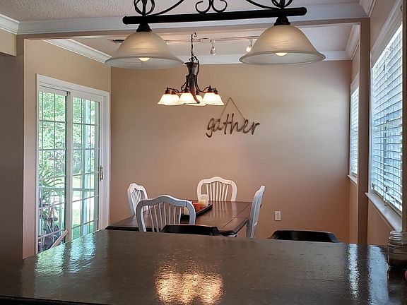 Spacious home on 9 lots. Large eat in kitchen with lots of counter space and cabinets. Wood laminate flooring. Crown molding. Lots of windows flood house with natural light. Screened porch. Back deck. Huge backyard. Circular drive. Close to shopping.