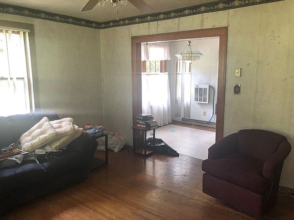Make this cottage your own. Nice front yard. Enclosed front sun porch.living room has ceiling fan and hardwood floors. Laundry off the kitchen. One bedroom has carpet the other is hardwood. Basement with living room, bedroom and bath. Property being sold for assessed value. Property sold as is where is.