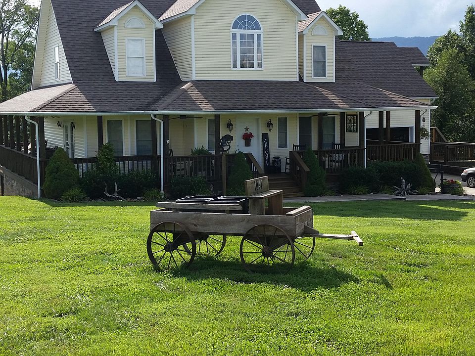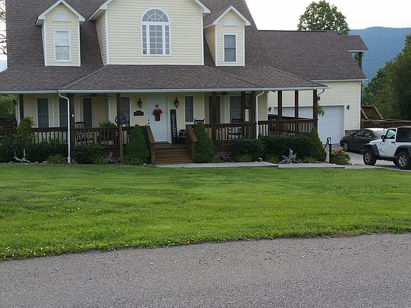 Welcome Home! Enjoy magnificent mountain & lake views from this beautiful home, complete with large wrap around porch for relaxing & breathing in the view. Main level features large great room with wood cathedral ceiling & built in entertainment center, master en suite with french doors leading to porch and master bath with jacuzzi tub & step in shower. Beautiful kitchen with custom hickory cabinets, pantry & laundry room & breakfast nook, plus formal dining room & half bath. Upstairs features 2 spacious bedrooms and full bath. Home features 2 car garage with another bedroom & bath above. Garage features nice built ins for lots of storage. This home has bay windows on both sides letting in tons of natural light. Need a place to store all the extra boats & toys? You will love the 5 bay