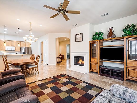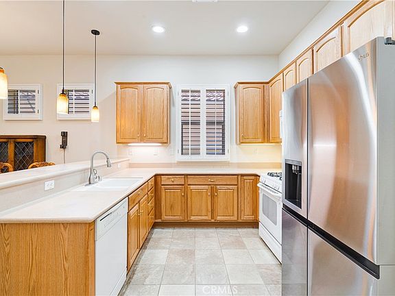 Beautifully maintained "Trillion" model with upgraded features! Located in the highly desireble Solera 55+ active community. This charming 2 bedroom, 2 bath layout is perfect for comfortable living and entertaining. The kitchen opens up to the dining and living area. Stainless steel refrigerator and appliances included. This popular floor plan features the added den/office with shelving and desk included. The bedrooms feature high ceilings and extra closet space. Enjoy BBQs in the backyard with extended patio coverage and citrus trees. Garage features extra storage, tankless water heater, and ramp for wheel chair access. Ready for new owners to make it their own!