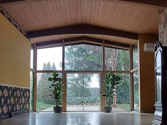 Adobe constructionGas fireplaceTerrazzo tile flooringSubstantial porte-cochereFloor-to-ceiling glass wallsDouble door entryLarge carport