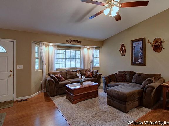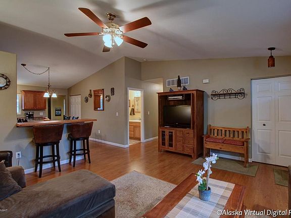 One of a kind ranch style home.Large detached 6 car garage/shop 48x38 with loft.Well maintained home with no stairs.Vaulted ceiling,laminate floor,two sided island breakfast bar & pantry.New carpet,remodeled bathroom,master bedroom with walkin closet,hot tub,bay window,and woodstove.Covered porch,landscaped yard,private fenced yard,garden,woodshed,firepit and shed.Heated double garage,RV parking.