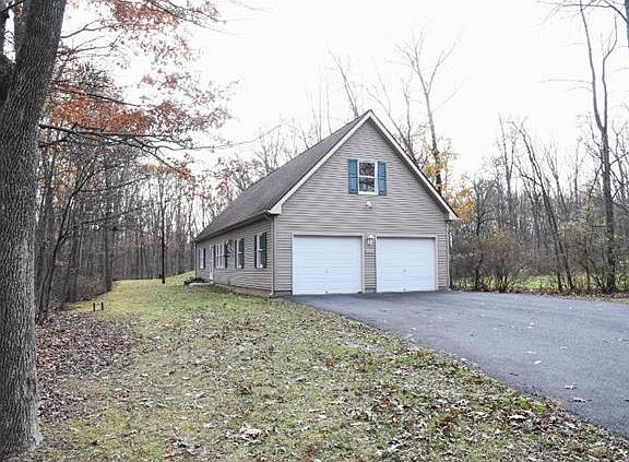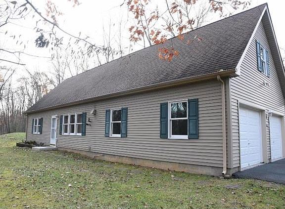 Pride of ownership is evident in this well maintained home nestled on 1 acre lot. LOTS of Storage throughout! Freshly painted, this home offers 1 floor living plus 2 bedrooms on 2nd floor or use the massive bedroom upstairs as a Master. Custom Stofanak cabinetry, some with beautiful glass fronts, provide lots of storage in the kitchen. New dishwasher; smooth top electric range w/oven & microwave built-in above. Laundry closet in kitchen. Full bath & large bedroom w/large walk-in closet complete the 1st floor. Beautiful oak banisters lead you upstairs to the 2 generously sized bedrooms, each with ceiling fans & large, well-lit closets. The 2nd full bathroom is located between the bedrooms. Attached 2 car garage w/abundant storage space above & garage door opener. Wander outside to enjoy the serenity of the woods; be sure to seek out the stream at the back of the property. USDA Eligible=0% down payment. Seller will replace gapping wood floors on 1st floor with full price offer.