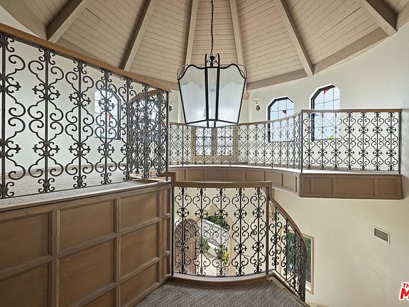 Perched atop a significant vantage point in Bel Air, this enchanted French Castle style estate boasts grand aesthetics, sweeping views over West Los Angeles, and a spacious flow which absorbs large parties of family and friends effortlessly.Entering the home, a spiral staircase and cathedral-like ceiling frames a grand hallway, which unfolds into multiple living rooms, a massive kitchen and world class views. Descending the hillside property into the outdoor area, one finds a gazebo overlooking the Getty Center, a stunning pool, a long cobblestone driveway and a spacious 1,500 square foot guest house with a loft, a kitchen, high ceilings and ample natural light. Bedrooms are spacious, warm, and feature en suite bathrooms and ample closet space. Primary suite features best-in-class views and a unique loft perfect for a home office or workout area. Excellent layout with thoughtful use of square footage. This estate executes flawlessly on its countryside aesthetic and fills all who enter with a nostalgic sense of joy and wonder. Minimum 13-month lease term.