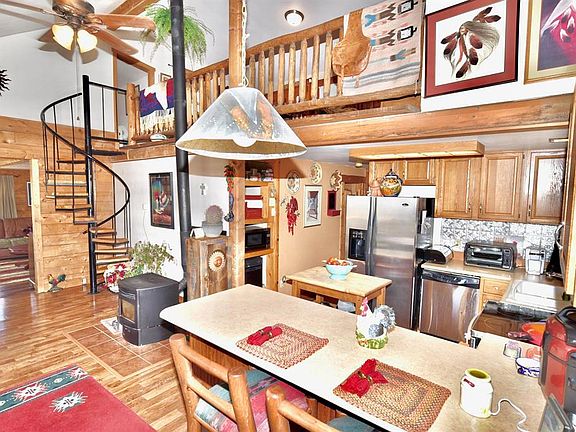 An oasis close to town with no covenants or HOA! This property must be seen in person to appreciate. Situated on over one-and-a-half acres of lush greenery secluded at the bottom of a hill, this two-bedroom home is cozy as can be! Walking in, you will love the rustic kitchen with stainless steel appliances. The adjoining dining area has huge outdoor views, a Quadrafire pellet stove, and a unique spiral staircase leading up to the playful primary bedroom loft. This bedroom boasts an extra office area, a walk-through closet, and a full bathroom with tile and a south-facing deck. Downstairs, you’ll find a living room with large windows, as well as a laundry closet, making for easy living. The guest bedroom is downstairs next to the ¾ bath. The home features 6-inch log walls, making it very efficient, not to mention the south-facing windows, making it solar passive. There are two window air conditioning units for maximum comfort. Outside, enjoy the extra space for your animals and toys. The numerous outbuildings are so convenient. The hobby building/art studio is situated near the home and offers amazing light from all the windows and has potential to be turned into a guest home (though doesn’t currently have any plumbing or septic). Also outside is the large two-car carport, a covered car/boat enclosure, a chicken coop, a peacock pen, a fenced-in vineyard, a hot tub pad that has wiring off a second breaker, and meticulous landscaping with countless different plant species—many different fruit trees and bushes, plus grape varieties. A gardener’s dream!!! Make use of the one share of UVWUA water that is pressure-fed from up the hill and doesn’t even require a pump! Come and enjoy the serene farm views. This type of property doesn’t come up often, so please take a look! ***Seller will pay for a home warranty up to $400 at closing!