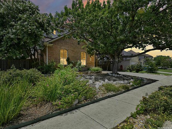 This updated, bright, serene home in the desirable Iron Horse Canyon is calling you home. Backing onto a greenbelt with an abundance of mature trees and easy access to the Helotes Park and Playground. Enjoy countless evenings out on the stone patio surrounded by mature trees and the tranquil sound of your own waterfall. This home is expansive with a well thought out layout and upgrades. The two story entry way welcomes you into the large open concept living, eating, and kitchen area. A wonderful space for both entertaining or getting cozy next to the fireplace. The kitchen is a chef's dream with updated and custom cabinetry, granite, ample storage, and functional layout. The range includes built-in spice racks that tuck away seamlessly into the cabinet. Look out onto the beautifully landscaped back yard as guests enjoy your company from the built-in banquet in the eating area. The laundry room comes will floor to ceiling storage and can also be used as a butler's pantry. This no carpet home offers all 4 bedrooms upstairs. The primary bedroom with its vaulted ceilings has huge windows overlooking the greenbelt, two walk-in closets, and a bright, relaxing full bathroom. The media room with its vaulted ceilings comes with a cabinet unit. Two secondary bedrooms have walk-in closets. This home offers it all including a whole house water treatment softener system. Peace and serenity, outdoor living, functionality, updated interior, all in the desirable neighborhood of Iron Horse Canyon. Conveniently located near Government Canyon State Natural Area, enjoy hiking, biking, and camping! This home is zoned into the prestigious NISD (O'Connor High School) and minutes to all of San Antonio's major highways, UTSA, USAA, and downtown.
