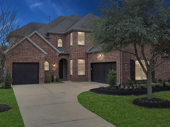 This 5 bedroom - 2 bedrooms down, 4 bath home is ready for immediate move-in! The beautiful entry leads to the study, formal dining, access to the 2nd bedroom down, and opens up to a beautiful living room with high ceilings. The open concept of the kitchen to living experience is sure to impress. The brick fireplace is a warm inviting area while the large windows look out to the back covered patio - and the recently re-plastered pool and spa! Your Chef will be pleased with the kitchen - so much storage, large island, double ovens, walk-in pantry. The Primary Suite is tucked away from the main living areas and features a spa-like ensuite bath. The grand stairway leads to a media room complete with screen, a game room that features dueling study areas, and a step down to three additional bedrooms - two that share a Hollywood bath! Large laundry with cleaning sink and under-stair storage are just a couple of added features to enhance this lovely home.