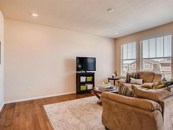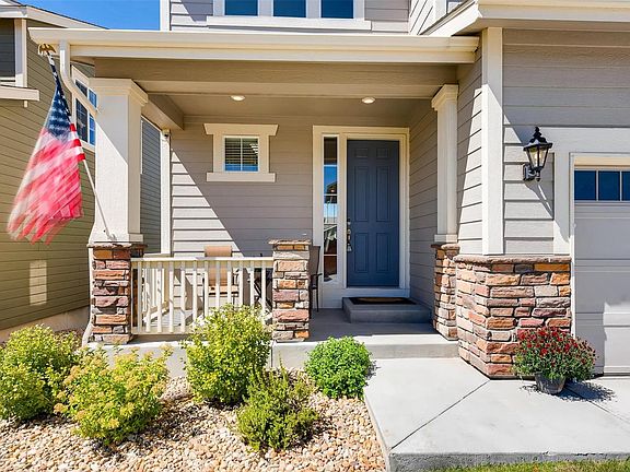 Better than new, this 2016 Lennar Elbert model is sure to delight! Hardwoods through the main floor, gorgeous chef's kitchen with stainless steel appliances, slab granite, and huge walk-in pantry. Mud room entry from the garage has built in drop zone and pocket office that provide a connected, efficient workspace, with everything you need to stay organized! Outdoor spaces are beautiful, with a covered front porch + extended elevated deck out back, providing great peek-a-boo views of the Rockies, and the in-ground trampoline provides hours of fun! Upstairs you'll find 3 graciously-sized bedrooms, two with mountain views! Master suite is massive! Upper level laundry makes life easy... The garden level basement has large windows, allowing in an abundance of light. Although not finished, upgraded carpet and pad make the basement space warm and easy to use... when you're ready, put your finishing touch on it, or keep it as is! Solar panels keep energy costs low. This one's a true gem!!!