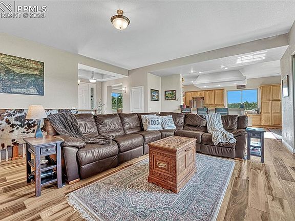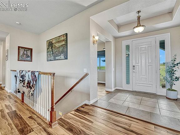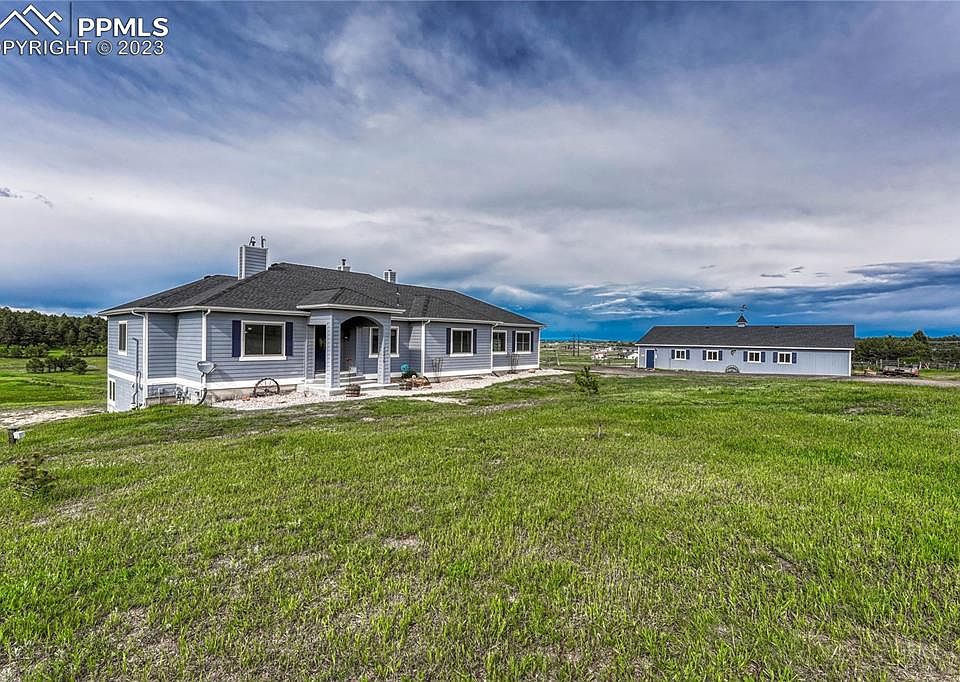 Looking for a place to get away from the Noise of City Life? Want a property where you can have your Equine and RV on site and not pay boarding or storage lot fees? Check out this Amazing Ranch Home in Black Forest! Situated on nearly 10 acres, this home features 4 Beds, 5 Baths, Formal Dining, Main and Basement Level Offices and so much more! When you enter the home, You are greeted with Stunning, easy to maintain Luxury Vinyl Plank Flooring. Your Eyes will immediately notice the views of the vast pasture and seasonal pond. to the Right is the main level office and to the left is the formal dining room with a coffered ceiling with LED lighting. The Kitchen is nicely appointed with Granite tile Counters, upgraded appliances a spacious island and oh so many cabinets for storage. The Breakfast nook and Living room are basked with natural light from the many large window and walkouts to the back deck. The Primary Suite also has a walkout to the deck as well as an attached 5-pice bath with jetted tub, double-sided fireplace and walk-in closet. There is also a Junior Suite on the Main level complete with private full bath and walk-in closet. There is New LVP and Carpet throughout main level. The fully finished basement has 2 large bedrooms connected with a jack-n-jill bath, an enormous rec room (pool table is negotiable), with walk out to patio, dry bar and another nook that could be a game room, music room or where everyone gathers for Movie night! The laundry room is more spacious than most and has a full-length folding table and a place to hang clothes as they come out of the dryer. Another bonus room/office is located just off the laundry and is complete with mounted TV and Built-in storage. There is also nice storage in the attached 3-car garage. The 40x60 barn has massive overhead doors on both ends for pull-thru ease as well as 3 built stalls and room for 2 more stalls (split doors in place). There is a fully fenced pasture for your horses to run and graze.