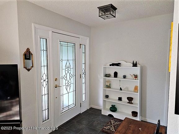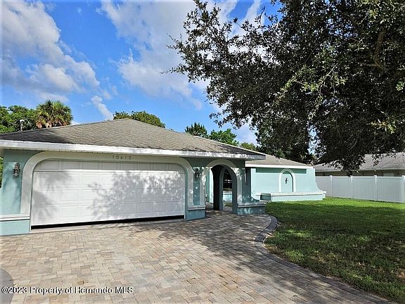 Spring Hill Pool Home - 3 bedroom, 2 bath, 2 car garage with in-ground pool. 1948 sq ft living area with living room, dining room, family room, dinette area, split bedroom floor plan, and inside laundry room. The kitchen has Corian countertops, stainless steel appliances, including a Bosch dishwasher (new in 2023), white cabinets, and recessed lighting. Cathedral ceilings, tile and bamboo flooring, newer tinted Pella insulated windows and slider doors. Covered lanai by the pool. Paver pool deck, lanai floor, walkway around the outside of the pool and an outdoor paver patio. 16x16 workshop in the fenced back yard. The neighboring property to the north is also available (.41acres) separately.