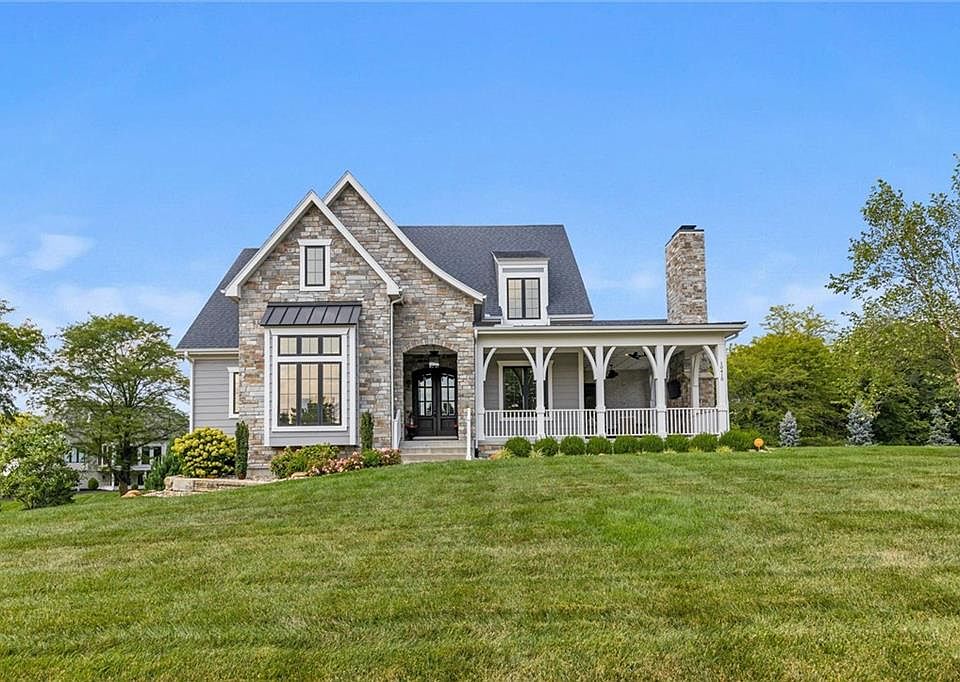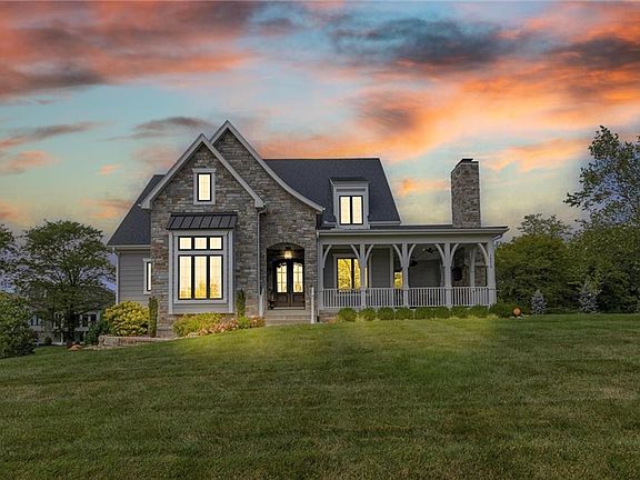 Welcome to your private sanctuary situated on just over an acre. This home greets you with a stunning, wrap-around front porch complete with a fireplace. Stepping inside, you're welcomed by the inviting warmth of the spacious great room with vaulted beamed ceilings. The room seamlessly flows into the expansive screened-in deck (14x25), where you can unwind and entertain guests in style, all while basking in the cozy glow of the fireplace. The gourmet kitchen offers custom cabinetry, a farmhouse sink, a beverage station with an ice maker, and luxurious leathered granite countertops creating an atmosphere of culinary delight, perfect for everyday meals and dinner parties. Retreat to the master suite, where coffered ceilings and luxurious marble tile set the stage for relaxation. His and her closets provide ample storage space, while the dual shower heads offer a spa-like experience that will leave you feeling pampered and refreshed. Venture downstairs to the finished lower level, perfect for endless entertainment. A family room that is great for movie nights and gatherings, a wet bar boasting leathered granite countertops and a full-size refrigerator ensures that refreshments are always close at hand. Step outside to the partially covered patio, where you can soak in the serene surroundings and enjoy the fresh air. But the surprises don't end there, a 12x18 additional storage area, a suspended garage with epoxy flooring, and a hobby room, offering endless possibilities for customization and storage. With five bedrooms, five bathrooms, a spacious loft, and a side-entry garage that adds to the home's curb appeal, this residence truly has it all. And with the picturesque view, you'll find yourself living in the perfect home in the perfect location.