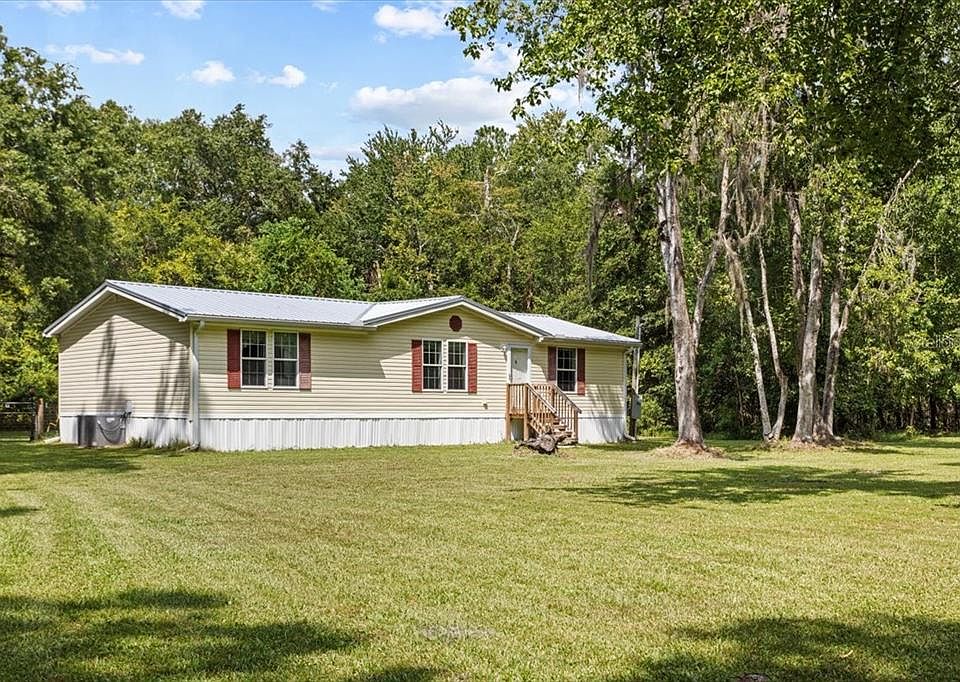 Private 7.75-Acre Retreat with Creek, Wildlife & Modern Comforts! Tucked away on 7.75 private acres, this well-maintained 2010 quality-built 3-bedroom, 2-bath mobile home offers the perfect balance of peace, privacy, and convenience. The property showcases a beautiful natural setting with a creek winding through the wooded back acreage. You will often see deer, turkeys, and abundant wildlife all around your property. The home itself is thoughtfully designed with a spacious open floor plan, perfect for both everyday living and entertaining. The island kitchen plus a walk-in pantry makes cooking a breeze, while the adjoining dining and living areas flow seamlessly together. A recent metal roof and newly replaced AC ensure worry-free comfort, while energy-efficient features add long-term value. The primary suite is a true retreat with the en-suite spacious bathroom, a step in shower, and plenty of storage. An inside laundry room adds extra convenience. Step outside to enjoy the fenced-in yard for pets, a handy 12' x 24' storage building, and all the space you need to spread out and make this property your own. Perfectly located with easy access to Gainesville Regional Airport, Gatornationals Raceway, the University of Florida, shopping, and top healthcare facilities, this home offers country living without sacrificing modern conveniences. A rare opportunity to enjoy acreage, wildlife, and a modern home all within reach of the city. This one checks all the boxes!