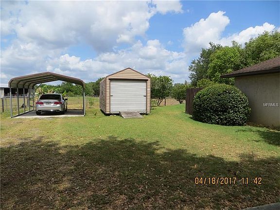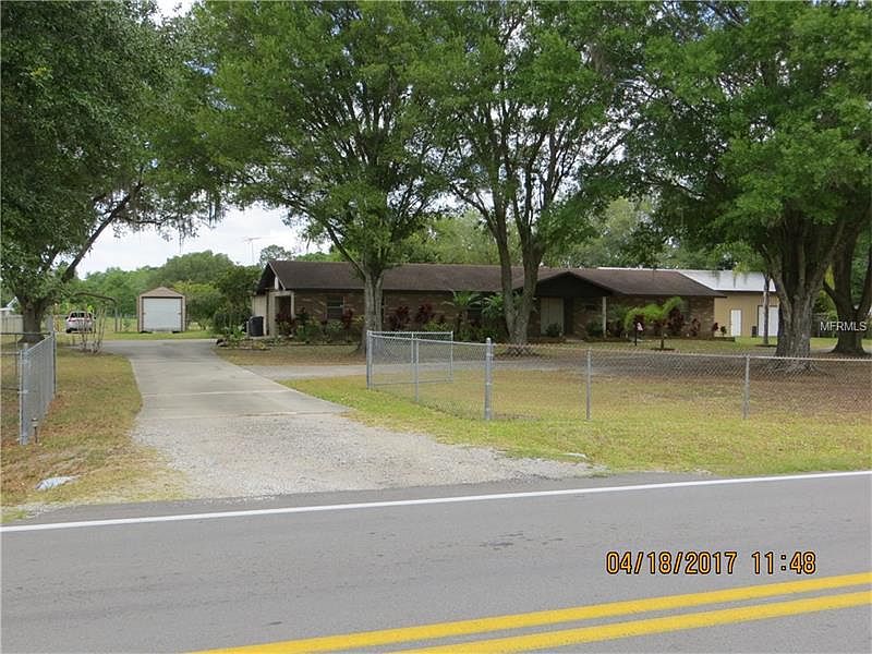 Back on the market! If you are looking for a country home with space to roam you just found it. This home sits on almost one acre and all fenced in. There is a detached garage and two additional parking under the roof for your motor home and boat. Large shed and 24x20 covered parking. As you enter the double door, you will come to a spacious living room with new wood floor, separate 21x16 family room with wood burning fireplace and laminate wood. New kitchen cabinets and granite counter tops. An island and new refrigerator ans new stainless steel sink. Open the sliding door into a screened in tiled lanai. Beautiful backyard with fire pit for the cool nights ahead. This home is equipped with top brand water softener, 4" pipe well and outdoor shower. New septic tank and newer A/C. Call and make your appointment today.