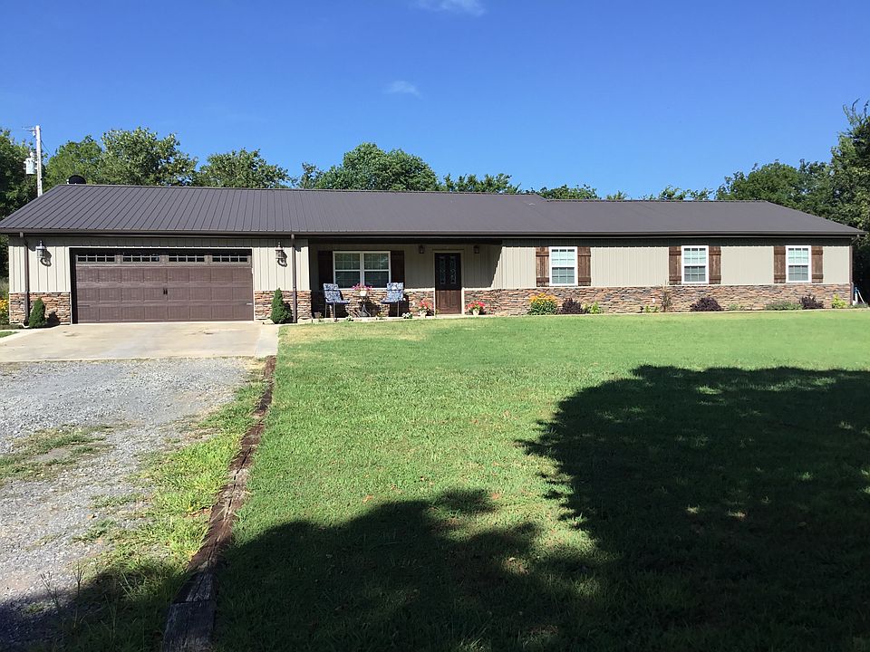 Beautiful 4 bedroom 2.5 bath home nestled in the corner of a dead end road. Peaceful feel of the country with a less than 10 minute drive to town! Built in 2014 this home features an open floor plan, crown molding and tray ceilings, stained concrete floors, master jacuzzi tub, master walk-in shower, walk/in closets with built-ins, large bonus/game room, office, large kitchen island and pantry, stainless steel appliances, 15x30 covered patio, 30x40x12 shop, spray foam insulation in walls, handicap accessible doors in all bedrooms and full baths, in ground storm cellar (located in garage). Must see! Please contact Josh or Megan Terrell for more info. 918-685-0404 or 918-814-3526 Willing to work with buyer’s broker at 2.5%!