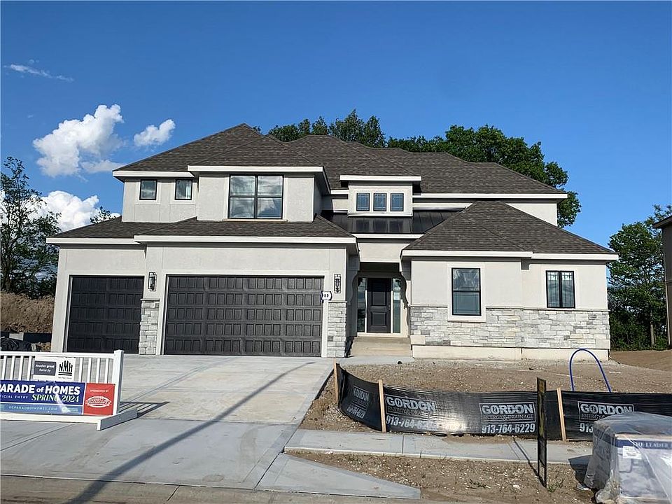 Jaw-Dropping "Brooklyn" 1.5 Story built by Award-Winning New Mark Homes KC!  Soaring Ceilings in Great Room, High-End finishes and Main Level Primary Suite! Additional Secondary Bedroom on Main Level would make a Great Guest Bedroom or Office Space. Upper Level Features 3 More Bedrooms making this a 5 Bedroom Plan! Upper Level also has Loft Space and Second Laundry Room. Pictures are of another completed home. Features will vary. This home is UNDER CONSTRUCTION. Still time to make design selections! Taxes, sq footage, room and lot sizes estimated. Cadence is a great Hunt Midwest community with swimming pool and trails. Located near major highways and interstates allows for easy access to downtown Kansas City, the new Kansas City International Airport, and several of the area’s top shopping and entertainment centers. (Framing stage as of 10/2023)