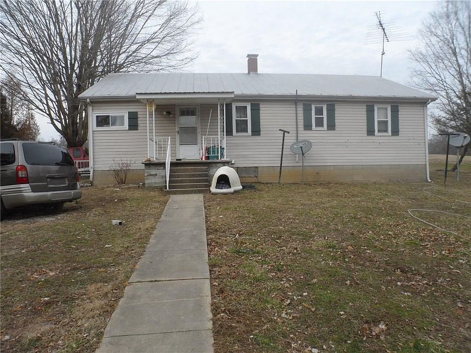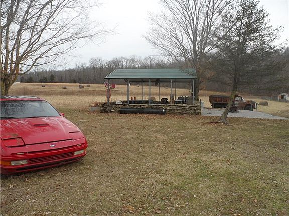 Beautiful country setting! Three Bedrooms, one car detached w/o home has dugout pond, three car ports; one with electricity and fire pit. Back up generator in garage; pole barn with 100 bales of hay; fenced area for goats. Hardwood floors thru out, Living Room with gas/lp fireplace. Half Basement for storage, recreation or other ideas you may have. Home comes with one year home warranty for your peace of mind.